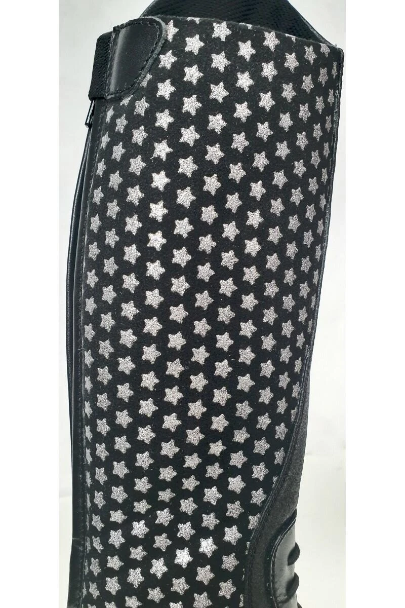 The stunning Carina boot from Brogini is made from a dazzling synthetic leather that is embedded with glitter for a truly show-stopping look. The inner leg features a silicone star pattern for enhanced grip.